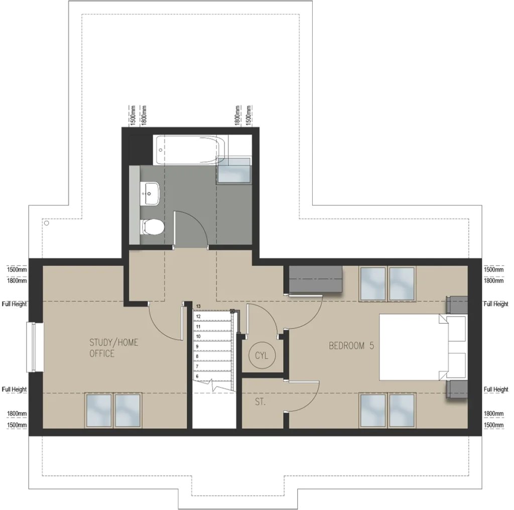 The top floor houses a further bathroom, fifth bedroom and a spacious office/study with elevated views.