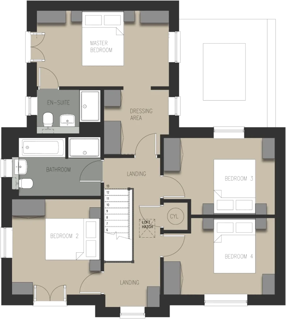 A generously proportioned four bedroom detached home, The Lowder house style is the largest two storey property on Pippins Beck, commanding superb plots throughout the site.